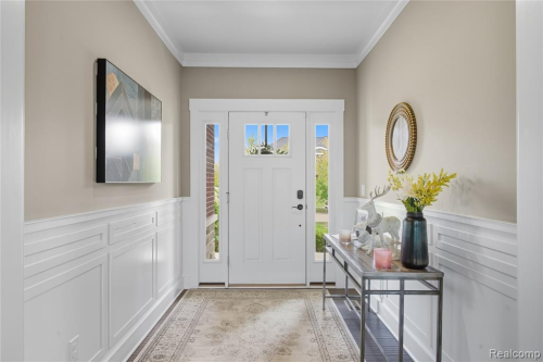Welcome to this stunning 2017 built colonial, nestled in the sought-after Merrill Park Community in Commerce Township. With 4 spacious bedrooms and 3.1 baths, this home offers both comfort and style at every turn. Step inside to a grand, light-filled foyer leading into an open floor plan that blends traditional charm with modern design. The chef's kitchen is the heart of the home, featuring stainless steel appliances, custom cabinetry, granite countertops, perfect for entertaining. Additional kitchen spaces include a walk in pantry and command center. Adjacent to the kitchen, the expansive family room with a cozy fireplace provides a relaxing space to unwind and gather. Four generously sized bedrooms offer privacy and tranquility, with the primary suite being a true retreat featuring a spa-like en-suite bath with a soaking tub, separate shower, dual vanities and a walk in closet. Step outside to the beautifully landscaped patio and private yard for a peaceful oasis. Perfect for outdoor dining or simply enjoying the surrounding nature. Located in the desirable Merrill Park community, this home is just minutes from parks, shopping, dining, entertainment and toprated schools.